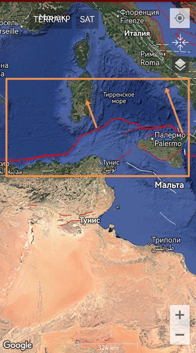 В ответ на пост Тектоническое напряжение медленно, но верно ползет в итальянскую зону из Атлантики. На уровне М7.0+/-0.2 трассируется граница Африканской плиты к северу от Алжира и Туниса. ===== Tectonic stress is slowly but surely creeping into the Italian zone from the Atlantic. At the M7.0+/-0.2 level, the boundary of the African Plate is traced north of Algeria and Tunisia.