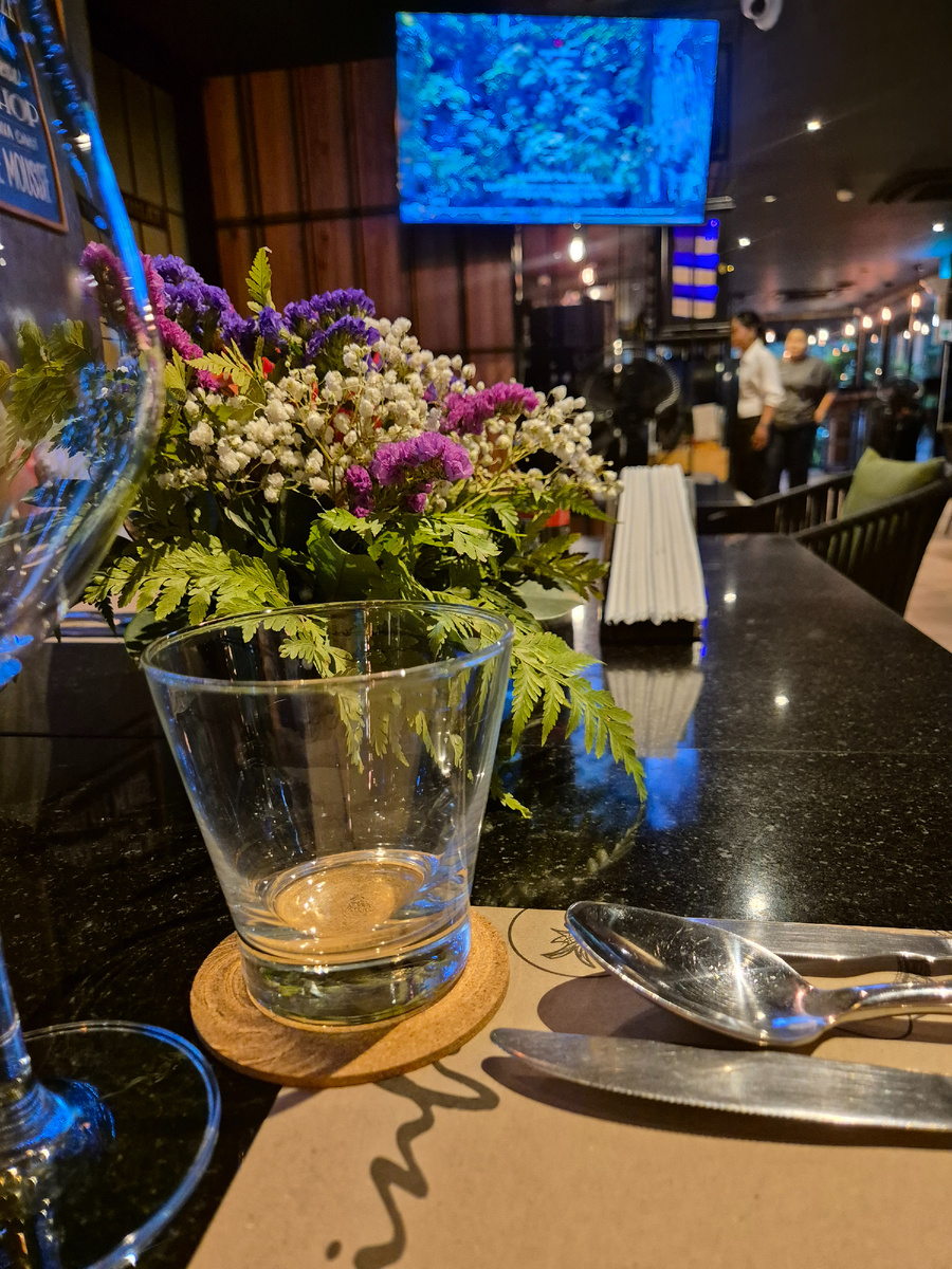 Под звуки самых популярных романтических мелодий мы погрузились в мир кулинарных открытий. Перед началом дегустации наших блюд мы решили скрасить ожидание экзотическими коктейлями и освежающими смузи. Как оказалось, ресторан радует не только своим изысканным меню, но и безупречным сервисом: блюда были поданы горячими и очень быстро. Наш стол украсили традиционные тайские спринг роллы с овощной начинкой, свежий салат с помидорами и нежной бурратой, щедро политый оливковым маслом и бальзамическим соусом (к которому прилагалась фокачча в стильном крафтовом пакете), а также ароматная пицца Маргарита. Но это была лишь прелюдия к основным блюдам. Я не смогла устоять перед соблазном попробовать традиционное массаман карри с курицей и овощами. Это удивительное сочетание кислого, острого и сладкого в одной тарелке, которое еще вкуснее становится, если смешивать его с подаваемым в качестве гарнира рисом. Моя мама отдала предпочтение фирменному блюду ресторана – говядине по бельгийски, томленн