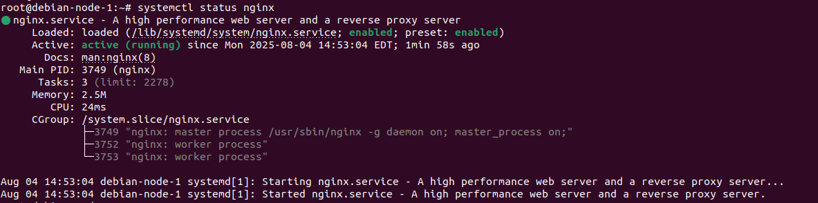 И снова мы говорим про отказоустойчивость и автоматизацию. В этот раз на повестке дня кластеры. Задача простая: нужно сделать кластер веб серверов nginx, чтобы при падении одной из виртуалок, весь трафик подхватывался второй, и пользователи не замечали аварии. Итак, вводные: У нас есть две виртуальные машины с IP адресами debian-node-1 192.168.122.158 debian-node-2 192.168.122.128 И отдельный IP адрес 192.168.122.140, который мы будем перебрасывать на активную ноду. Чтобы две наши виртуалки могли обращаться друг к другу по сети, пропишем в хостах (/etc/hosts) каждой ноды строки: 192.168.122.158 debian-node-1 192.168.122.128 debian-node-2 Если у вас настроен DHCP сервер и ваши виртуальные машины получают адреса от него, это делать не обязательно. Но я лентяй, мне простительно. Да и не хочется лишний раз поднимать очередной сетевой сервис на домашнем ноутбуке. Установим на каждую из виртуалок nginx, который и будем кластеризовать: apt install nginx И сразу же запустим его с добавлением в
