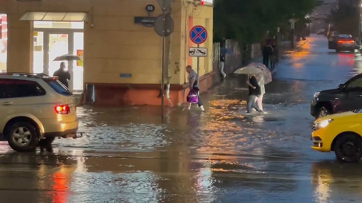 По колено в воде переходят туляки некоторые перекрестки после сильнейшего ливня. Дождь периодически идет весь понедельник, 4 августа, с небольшими перерывами. Тротуары и улицы превратились в реки, а многие дворы – в пруды. В подземных переходах – водопады. От воды не скрыться даже в общественном транспорте – в соцсетях туляки сообщают о потопе в некоторых автобусах. Администрация Тулы, предвидя такое развитие событий, предупредила днем, что ливневая канализация в городе находится в рабочем состоянии, ее обслуживают регулярно. Сегодня две бригады чистили ливневку в местах, где традиционно после дождя образуются водоемы. О том, что неделя с 4 по 10 августа в Туле начнётся с сильных ливней, сообщал ранее руководитель прогностического центра «Метео» Александр Шувалов. Он отметил, что местами может вылиться до половины месячной нормы осадков. По ощущениям, вылилось точно не меньше.