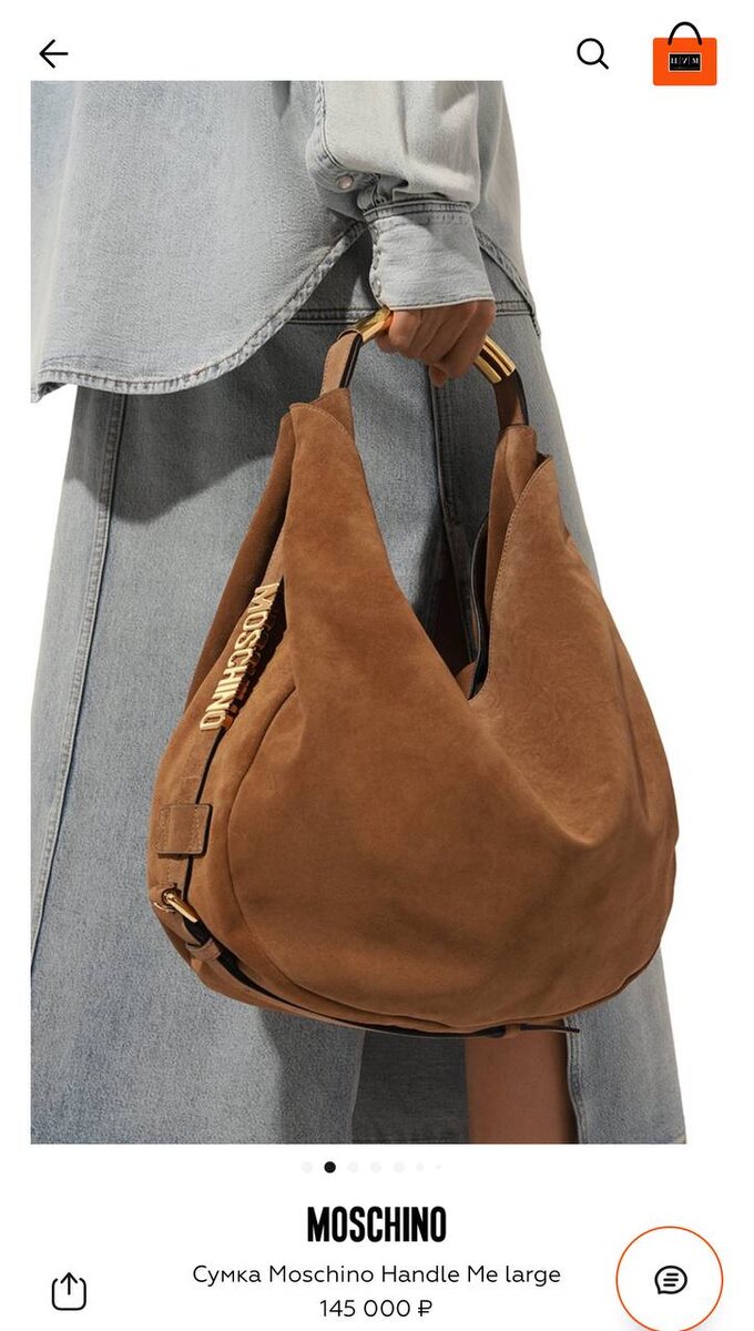 Сумка Moschino Handle Me large Замшевую сумку хобо Handle Me дополнили на ручке золотистой деталью, которой вторят логотипы на регулируемых боковых ремешках. В основном отделении, закрывающимся потайным магнитом, предусмотрели карман с молнией и накладной. -натуральная замша -размер 36/33 комплектация пыльник -цена 7500₽