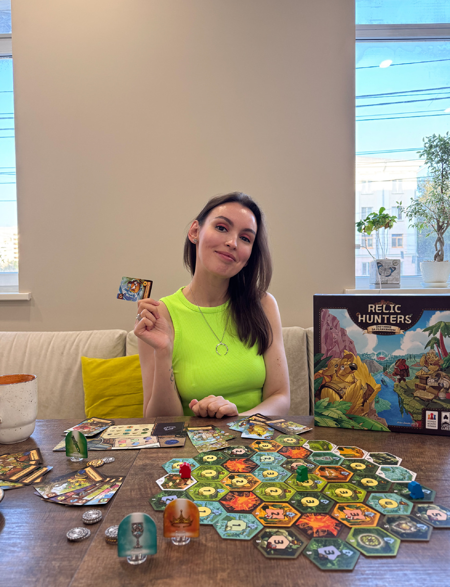 Вопрос, как на такое невезение будет реагировать ребёнок, и вот Нике у меня явно неудачи давались в игре тяжело: она уже к концу партии, понимая, что проигрывает, очевидно скучала и даже не хотела доигрывать. Я всё надеюсь, что она согласится опробовать игру на троих, где артефакты зарыты (и появляются вайбы «Шакала» и «Легенд пиратов», если вы понимаете, о чём я), и «Охотники за реликвиями» заиграют для неё новыми красками.