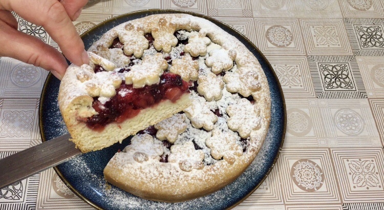 Украшаем пирог сахарной пудрой, нарезаем на порционные куски и подаём к столу. Нежное рассыпчатое тесто, много сочной начинки, делают пирог просто изумительно вкусным. Даже нельзя сказать что этот пирог постный.