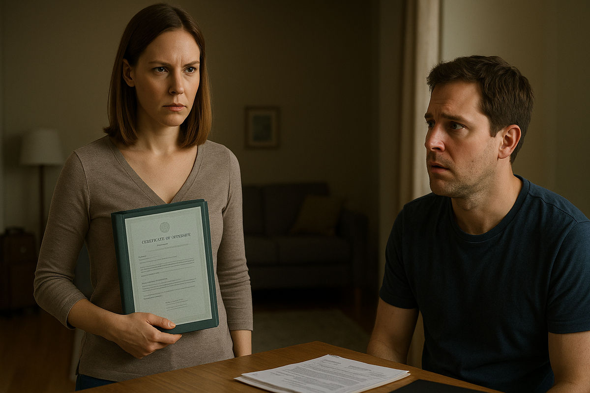 — Вот свидетельство о праве на наследство, — Даша указала пальцем на документ. — Дата оформления. Посмотри внимательно.