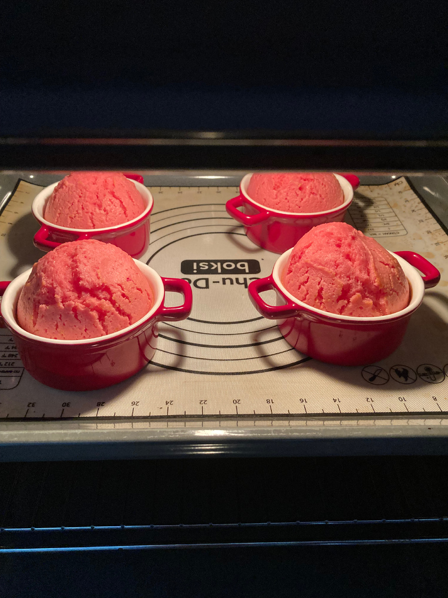 У нас сегодня малиновые кексы. Молоко коровкино натуральное. Кекс по бокам клубничное варенье. На обед запекла картошечку. Я запекала ее без масла, только приправы.Можно любые приправы на ваш вкус. Помидор и халапенья.