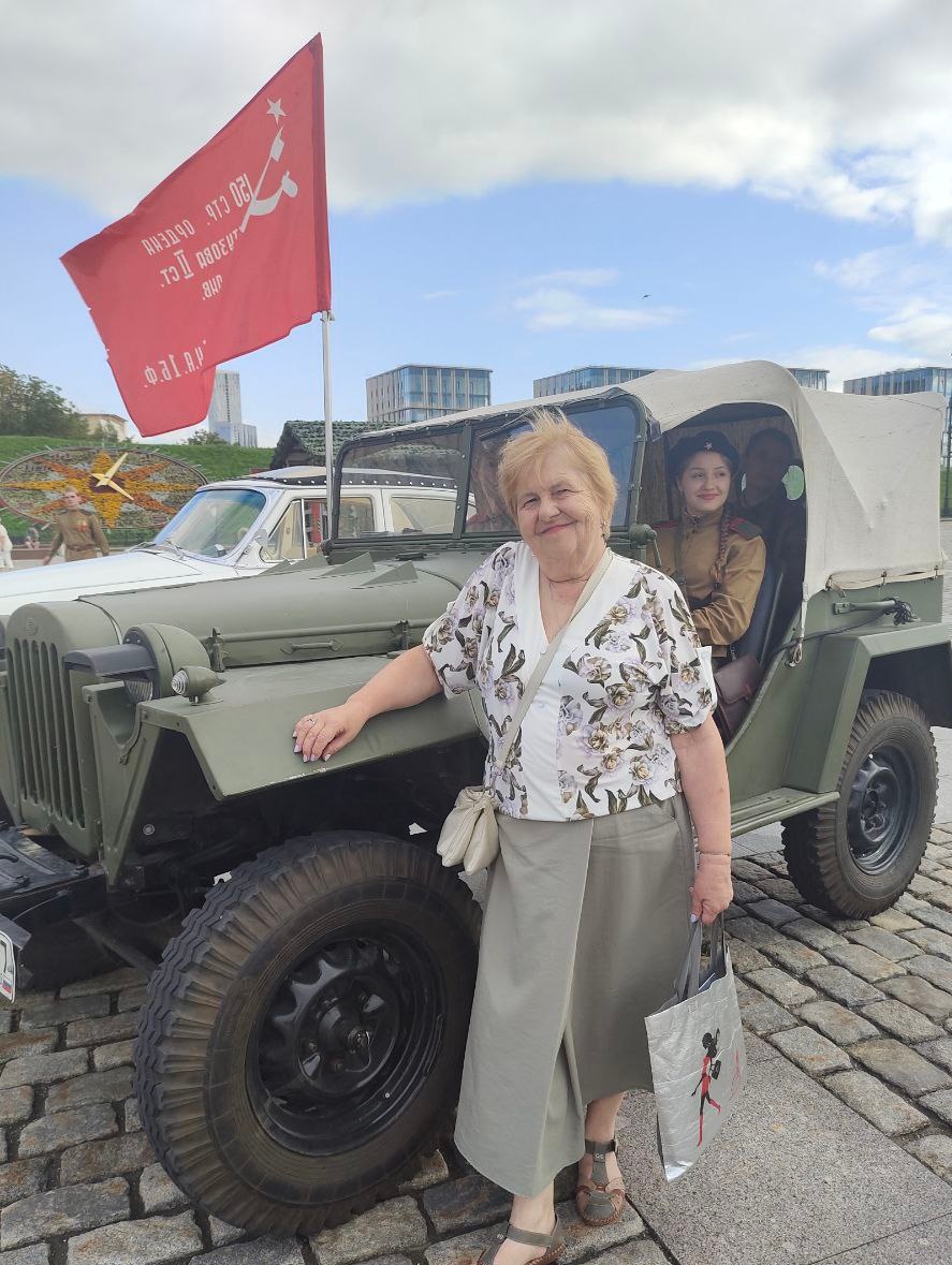 5 августа 2025 года Здравствуйте, друзья! В Парк Победы мы приехали уже ближе к вечеру. Встретил нас этот огромный мемориал, как и всегда, гостеприимно. Прямо у выхода из метро всем желающим предлагалась небольшая бесплатная экскурсия по главной аллее парка, к которой мы без раздумий и присоединились. Всего 6 человек и увлечённый своим делом экскурсовод. Но сначала обязательная фотография на фоне автомобилей времён Великой Отечественной. Детям такое нравится, ну и мы присоединились. История этого места на подступах к столице нашего государства насчитывает несколько веков. Я об этом уже писала после предыдущего посещения парка, повторяться не буду. В конце будут ссылки на статьи о предыдущих посещениях парка Победы. По словам нашего экскурсовода, вот эта небольшая зелёная гряда - это всё, что осталось от того Поклонного холма, на котором Наполеон не дождался "ключей" от Москвы. На ней возвышается 6-ти метровый Поклонный крест в честь подвигов воинов нашей страны в разные. годы. Устано
