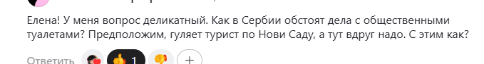 Привет друзья! Спасибо, что заглянули. Я рада приветствовать вас на своей странице. Меня зовут Елена и я живу в удивительной Сербии уже много лет. Пишу о жизни Сербии, о людях, менталитете, короче обо всем... Присоединяйтесь, если вам это покажется интересным. И я покажу вам прекрасную Сербию такой, какая она есть. Некоторое время назад, я поставила пост, для того что бы вы писали под ним ваши вопросы о Сербии. Вопросов мало, но они есть. Спасибо вам!!! ОТВЕЧАЮ ЕЩЕ НА ОДИН ВОПРОС Речь пойдет не о Новом Саде, а о Сербии (моих наблюдениях и о городе в котором я живу) Сербия, с ее богатой историей, живописными пейзажами и гостеприимными людьми, привлекает множество туристов. Но что делать, если во время прогулки по очаровательной Сербии внезапно возникнет естественная потребность? Как обстоят дела с общественными туалетами в Сербии, и стоит ли туристу беспокоиться? Давайте разберемся. В целом, ситуация с общественными туалетами в Сербии, как и во многих других странах, неоднозначна. Вы не