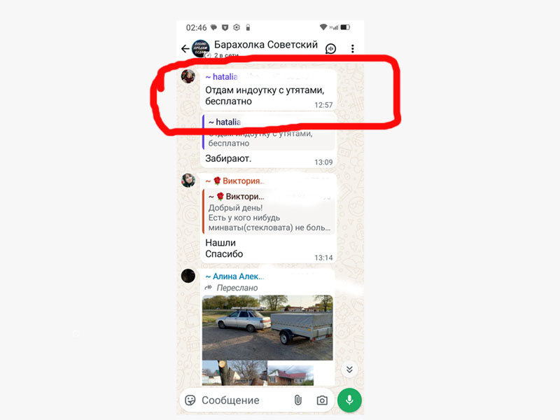 Приобрести в сезон индоутёнка в нашем посёлке не проблема. По стоимости - копейки, 50-70 руб. за утёнка а со второй половины лета - чуть ли не даром отдают, растут то утята долго, а нужно, чтобы до зимних холодов вырасти успели. Как раз в подтверждение моих слов прочитала на днях в местной нашей "Барахолке" вот такое объявление, и оно не единично.