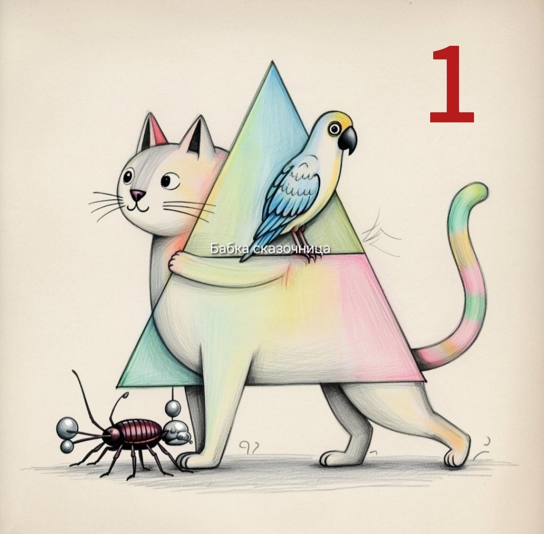 В самом большом, самом солнечном и чуть скрипучем доме на свете жила девочка Мия. А ещё в этом доме жили три очень необычных друга, которых знала только она и лучики солнца, играющие в пылинках по утрам, словно маленькие балетные труппы. Итак, начнём знакомство с жителями прекрасного дома... Трапеция - это не просто кошка, а Кошка с Большой Буквы! Её шерстка переливалась, как самый дорогой серый бархат, а походка — такая точная и грациозная, что казалось, она вымеряет каждый шаг линейкой. Трапеция обожала порядок: миска стояла строго на месте, игрушки — в ряд, а серебристый шарик с колокольчиком был её главным сокровищем. Она смотрела на мир свысока, с лёгким презрением ко всему, что не было идеально. Имя ей дала сама Мия, которая просто обожала решать всевозможные задачки по арифметике. Льюис — попугай-мыслитель Это был не просто попугай. Его перья сияли всеми цветами радуги, а глаза — неугомонно любопытные. Он жил в клетке у окна, но дверца всегда была открыта — потому что он был