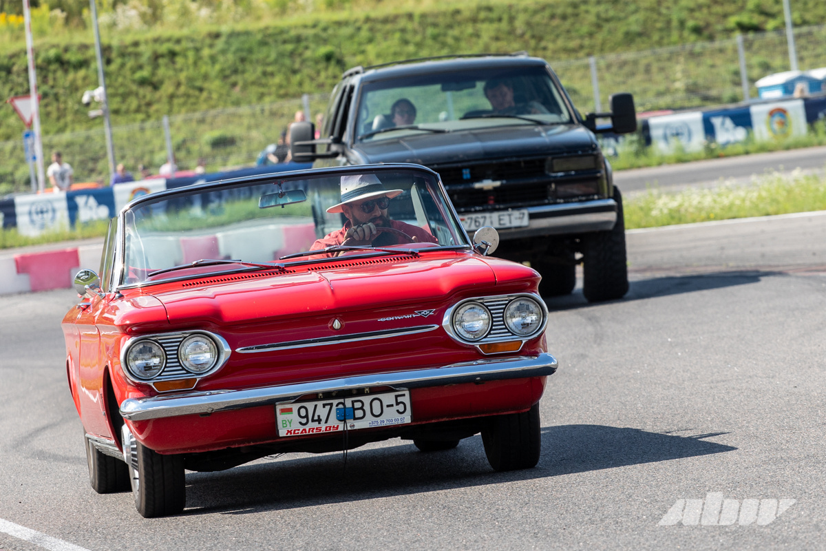 Однозначно, одна из самых эффектных машин в этот раз была у Руслана, организатора Vintage Day. Chevrolet Corvair просто взрывал голову эффектным появлением на треке и терял колесные колпаки на ходу! При этом Руслан должен был приехать на еще другом винтажном автомобиле, но в нем подвела водяная помпа…