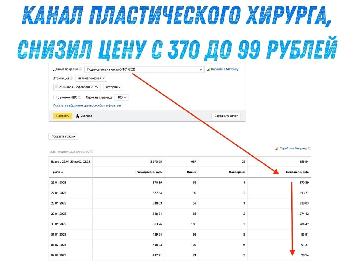 Снизил цену за подписчика больше чем в 3 раза за 1.5 недели. Показываю в цифрах, пишу про % конверсии.