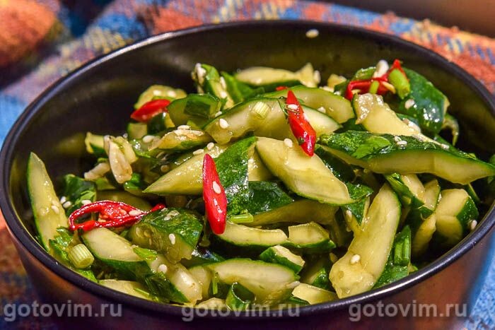 А теперь 2 рецепта китайского салата из битых огурцов.