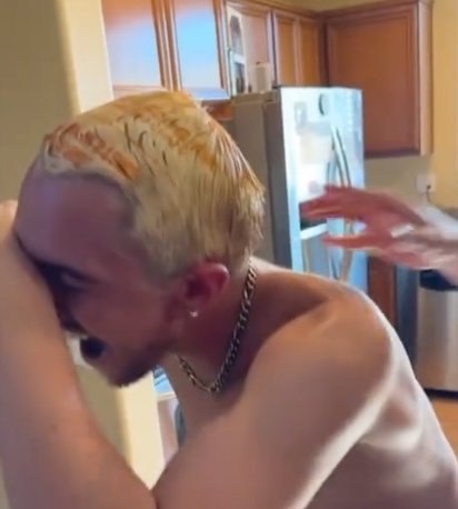 Этот парень просто хотел покрасить волосы, но вместо шапочки, использовал пакет... И вот что из этого вышло 😅
