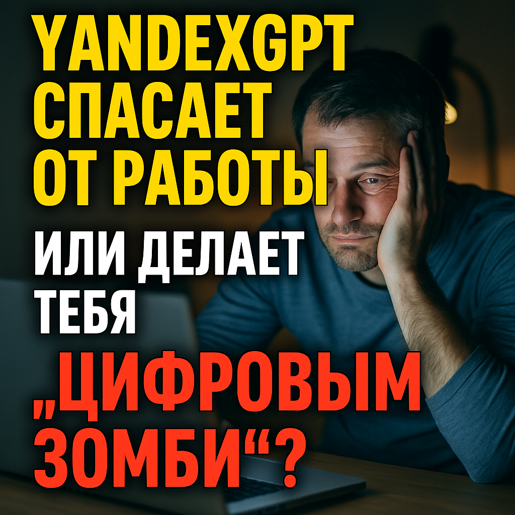 Знакомый копирайтер Андрей рассказывал, как писал сам статью неделю, потом отдал YandexGPT, и получил готовый текст за минут 10. Сначала облегчение — потом обида: авторство всё равно твое, а вот креатива — ноль. И чувство: ты просто стал кнопкой запуска ИИ. Твои идеи умирают, ты лишь «оператор промтов». А если ИИ слишком часто заменяет тебя — ты перестаёшь расти как профессионал. Менеджеры счастливы: «ИИ сделает всё за вас!» Работник же сидит и пишет промты и правит ответы ИИ. Муза умерла — началась рутину.