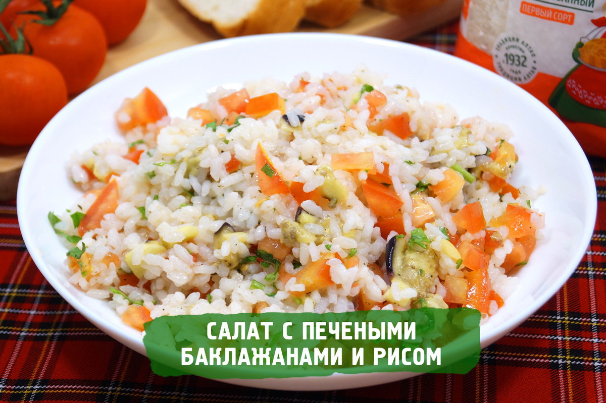 Салат с печеными баклажанами, рисом и овощами Ароматные печеные баклажаны, рассыпчатый рис и свежие помидоры создают вкус лета в каждой ложке. Легкая заправка из натурального подсолнечного масла с чесноком и прованскими травами подчеркивает натуральность ингредиентов. Идеальный гарнир к рыбе или самостоятельное вегетарианское блюдо. Время приготовления: 40 минут. Ингредиенты: 300 мл воды, 2 баклажана, 4 ст. ложки круглозерного риса ТМ «Алейка», 2 помидора, 4 ст. ложки натурального подсолнечного масла ТМ «Алейка», 1 пучок зелени петрушки, 1/2 ч. ложки соли, 1/4 ч. ложки сушеного чеснока, 1/4 ч. ложки сушеных прованских трав. Приготовление: Приятного аппетита!