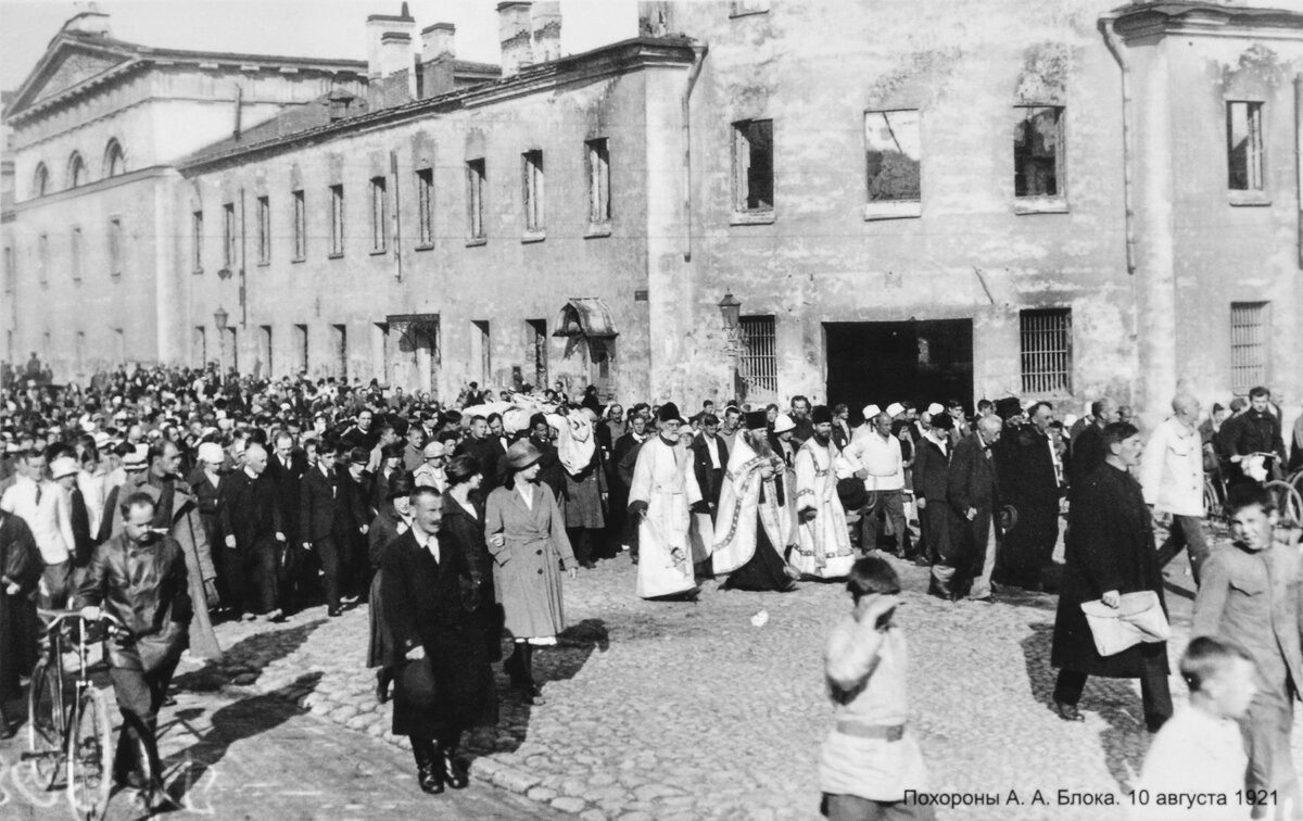 Александр Блок скончался 7 августа 1921 года в возрасте 40 лет от эндокардита, осложненного цингой и нервным истощением. Смерть ведущего поэта русского символизма совпала с периодом, когда многие интеллигенты чувствовали себя "задушенными" новой властью. Похороны, состоявшиеся три дня спустя, были организованы в спешке: объявление о них не успели опубликовать в газетах, ограничившись афишами. Поэтому в последний путь великого русского поэта провожало всего около 1000–1500 человек.