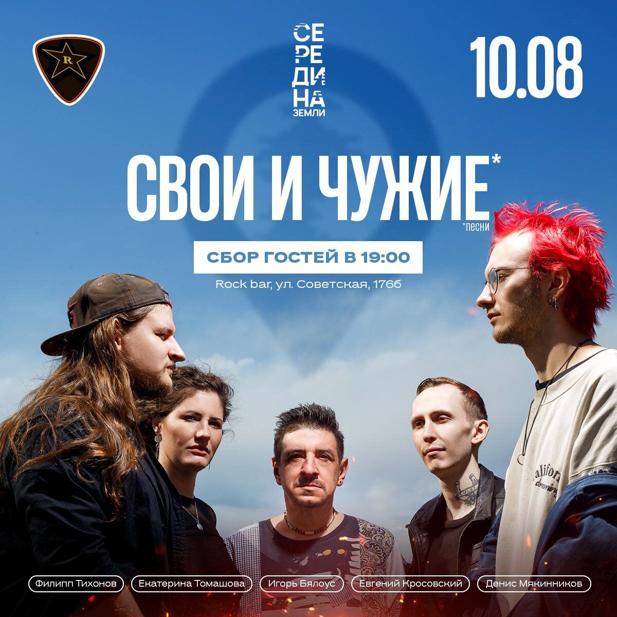 10 АВГУСТА ВС. 19:00 ”СВОИ И ЧУЖИЕ” КОНЦЕРТ ГРУППЫ ”СЕРЕДИНА ЗЕМЛИ” ”Друзья! Вы готовы провести вечер под аккорды настоящего рок-н-ролла? Тогда приходите на концерт группы ”Середина Земли”, где они исполнят свои лучшие песни и окунут вас в атмосферу настоящей российской классики! Что нас ждёт? Группа покажет программу ”Свои и чужие”: это значит, что будут звучать как собственные хиты музыкантов, так и любимые всеми каверы на легендарных исполнителей отечественного рока! Вечером будет тепло от гитарного звука и души ребят из группы. Так что хватайте друзей, собирайтесь компанией или приходите сами - атмосфера создана именно для того, чтобы разделить эмоции вместе! Ждём вас! Будет весело, душевно и по-настоящему круто!” Билет 500₽ Встреча гостей 19:00 АС 16+ FC/DC Данная публикация носит исключительно информационный характер. 📞INFO/RV (с 15:00) +7-9148-95-07-19 💻 INFO/RV: www.rockbar38.ru 📍г.Иркутск, ул. Советская 176Б