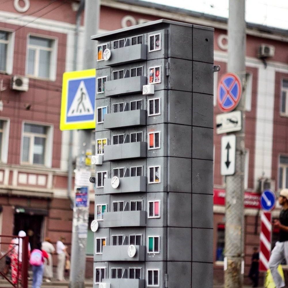 На пересечении улиц Тимирязева и Партизанской теперь красуется арт-объект - панельный дом из девяти этажей. В его окнах можно увидеть героев мультфильмов и мемов. «Панельку» создали в рамках арт-лаборатории «Голос улиц». Авторы проекта – художники Василий Трускалов и Евгений Бояркин, свою работу они сделали на телефонному шкафу. В «квартирах» дома можно увидеть волка и зайца из «Ну, погоди», героев «Тайны третьей планеты» и даже «мемного» кота «ОКАК». – На центральном рынке есть здания конструктивизма – больница и пожарная станция, а напротив шкафчика стоит ТК в стиле необрутализма. Мне пришла идея, что было бы забавно, если бы здесь стояла всеми нами знакомая панелька. Они, в основном, появились при Хрущеве, поэтому и персонажи выбраны из того периода, – говорит автор идеи Василий.