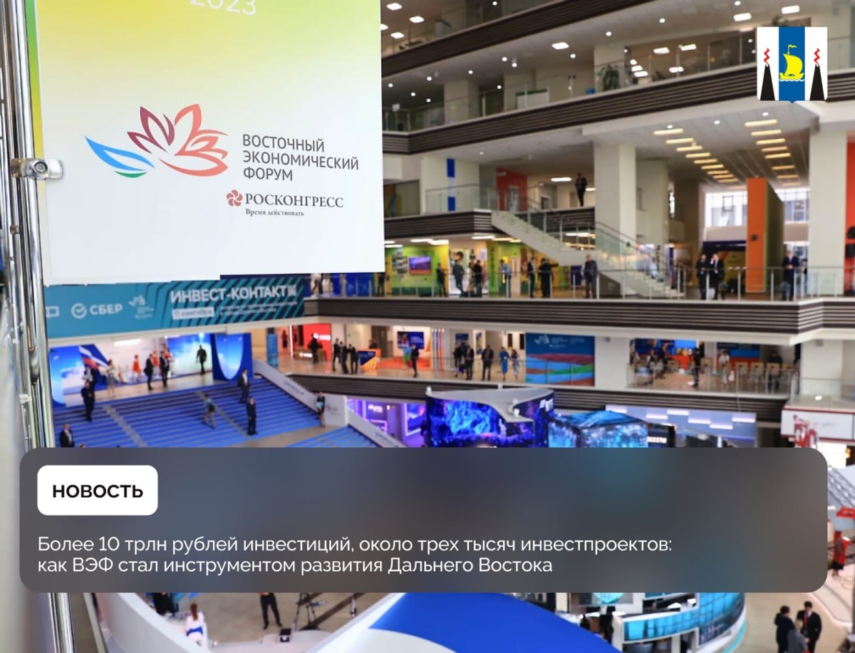 Более 10 трлн рублей инвестиций, около трех тысяч инвестпроектов: как ВЭФ стал инструментом развития Дальнего Востока Десятый, юбилейный Восточный экономический форум состоится 3–6 сентября во Владивостоке на площадке кампуса Дальневосточного федерального университета. За годы проведения ВЭФ стал полноценным инструментом развития Дальнего Востока и способствует интеграции территории в экономику Азиатско-Тихоокеанского региона. На Форуме традиционно обсуждается создание и совершенствование преференциальных режимов, запуск новых инвестиционных проектов, благодаря которым формируются рабочие места, а регион становится более привлекательным для жизни и развития. «На Восточном экономическом форуме обсуждаются результаты выполнения поручения Президента Российской Федерации Владимира Владимировича Путина по ускоренному социально-экономическому развитию Дальнего Востока. С использованием механизмов государственной поддержки в дальневосточных регионах реализуются 2,9 тыс. инвестиционных проек