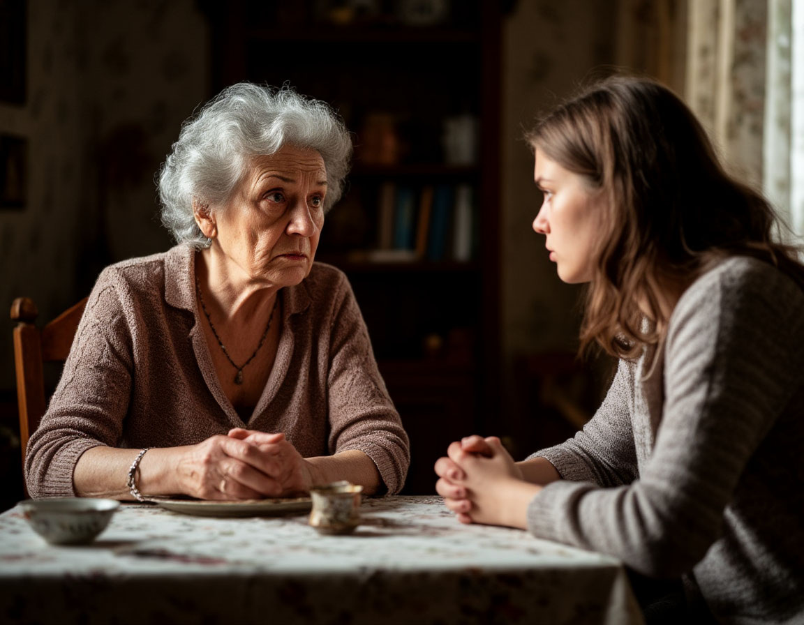 подоконнике, следы ремонта под окнами. Дверь открылась до того, как она успела поднести ключ. "Я знала, что ты придешь," — мать стояла на пороге в поношенном домашнем