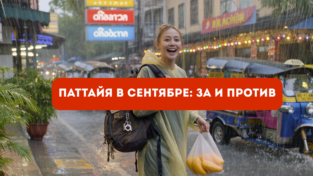 «Паттайя в сентябре: ливни, лобстеры и ловушка для туриста» Я стою на трассе где-то под Чонбури, ловлю попутку, рюкзак в два обхвата и чешу в Паттайю — в сентябре. Да-да, в разгар сезона дождей, когда туристы уверены, что всё там тонет, а отели стоят пустыми, как холодильник после зарплаты. И вот сейчас расскажу, зачем ехать в Паттайю именно в сентябре, что там реально происходит, и где не подскользнуться — в прямом и переносном смысле. В конце — неожиданный вывод, не пропусти. Первый миф, который я развенчала лично: в сентябре в Паттайе не ливень нон-стоп, как пугали форумы. Да, дожди бывают. Да, могут идти несколько дней подряд. Но чаще это вечерние ливни по 30–60 минут, иногда ночные. Утром всё сухо, свежо и тепло. И — барабанная дробь — меньше китайских туристов с колонками JBL, меньше толкучки, очередей и шума. Местные говорят: “Если хочешь увидеть настоящий Таиланд — приезжай в низкий сезон. Настоящий Таиланд не любит толпу”. 1. Цены падают, как спелые манго.