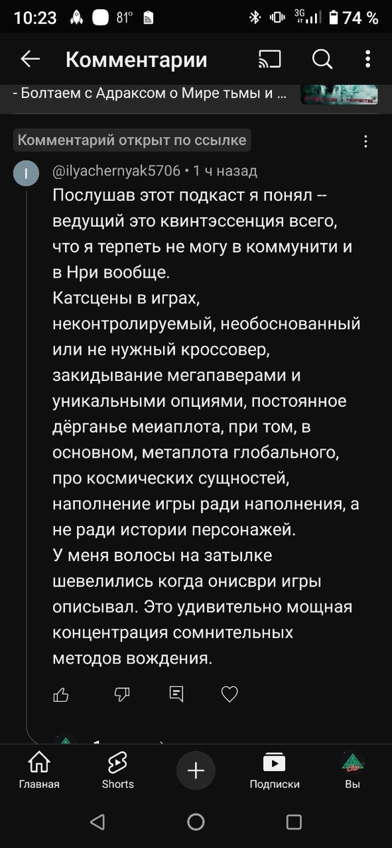 Прочитав этот комментарий я понял - комментатор квинтэссенция всего, что я терпеть не могу в комьюнити и в НРИ вообще. Вырывание из контекста, выдумки, возведение своего мнения в абсолют.