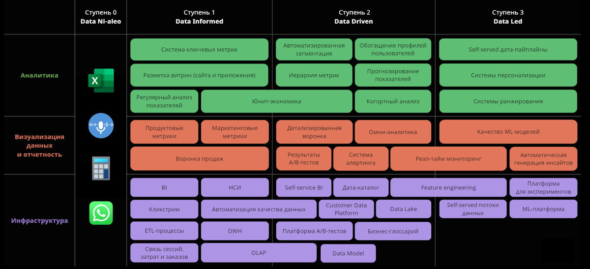 Еще пять лет назад у российского рынка была практически нулевая дата-культура: всю бизнес-информацию хранили в Excel и мессенджерах, а качественной аналитикой занимались лишь крупные ИТ-компании. Сегодня большинство команд на первой стадии дата-трансформации: сформулировали продуктовые метрики, разметили цифровые витрины, научились базово анализировать и визуализировать данные.