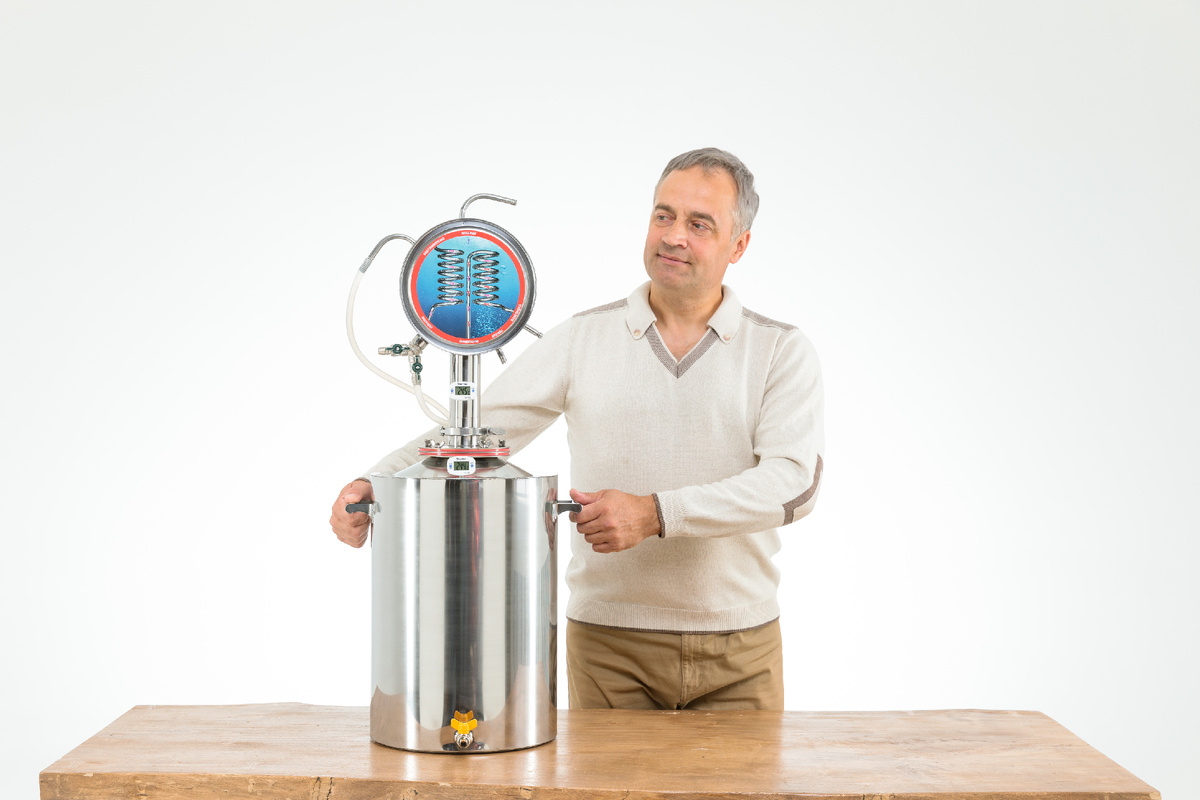 Аппарат оснащен двумя термометрами — электронным и биметаллическим, что позволяет точно контролировать температуру в обоих баках и оптимизировать процесс перегонки.