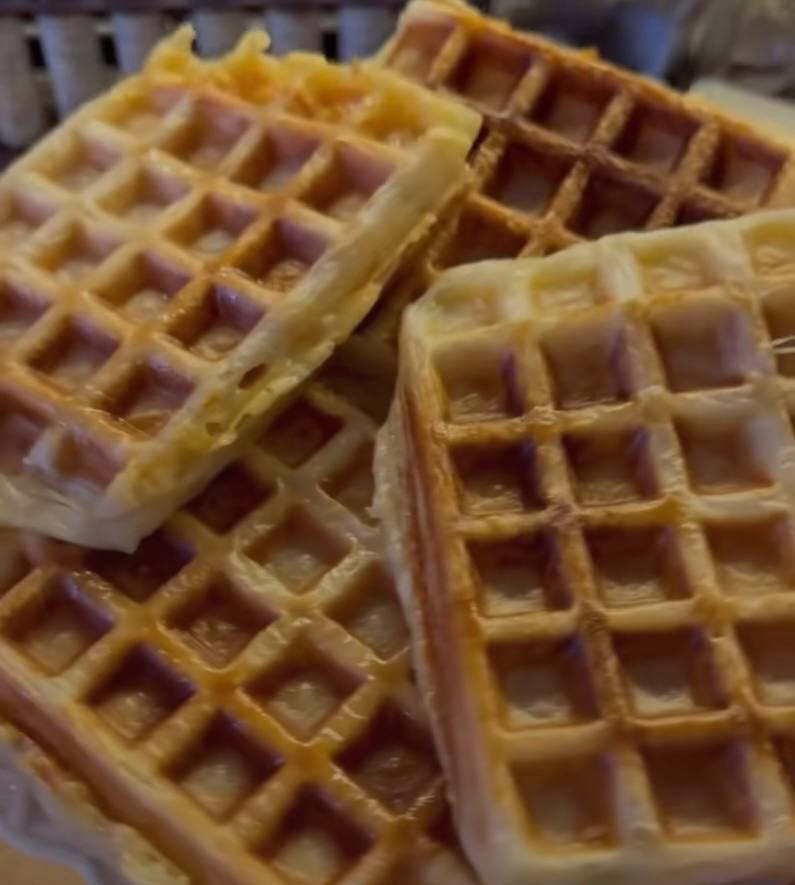 Посыпьте (по желанию): Если хотите сладкие вафли, посыпьте кусочки теста сахаром (особенно эффектно с крупным кристаллическим) и/или корицей. Для соленых — посыпьте тертым сыром, травами, специями или семенами.