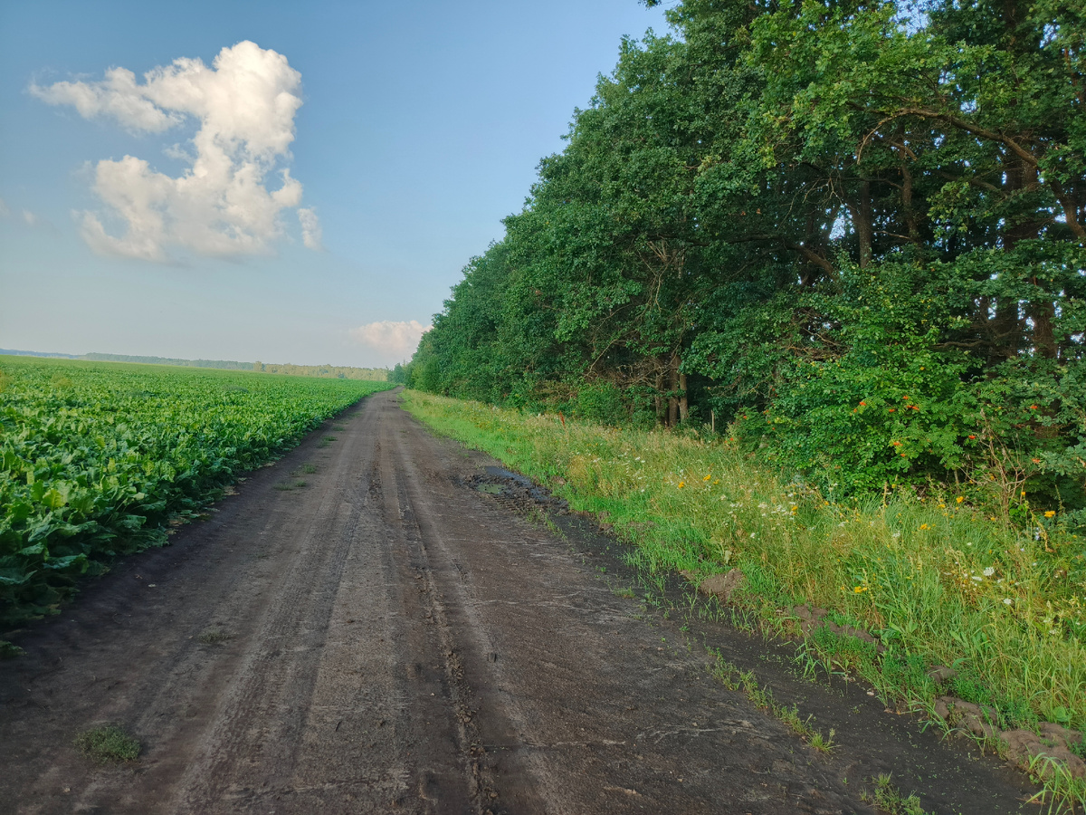 Всем привет! Наконец-таки мне удалось выбраться на прогулку по окрестностям. Мои постоянные читатели знают, что я сейчас выкармливаю стрижа, которого недавно подобрал на дороге. Кормить его нужно каждые три-четыре часа, и поэтому далеко и надолго я отъехать сейчас никуда не могу. Поэтому вечером отправился на пару часиков прогуляться вдоль одной полевой дороги, что находится не очень далеко от моего города. С одной стороны дороги находится поле, засаженное сахарной свёклой. А с другой — дубовая посадка. Между дорогой и посадкой есть небольшая обочина. Вот ее то мы и будем пробивать. Гулять сейчас одно удовольствие. Не жарко, овода с мошкой куда-то делись. Даже ветровку не нужно надевать. Можно ходить в одной футболке. На дубах уже наливаются желуди. Довольно большие стали! Но пока ещё зелёные. А под дубом росло вот такое интересное растение с гроздьями ягод. Ягоды пока ещё тоже зелёные, но к осени станут ярко-красными. Правда, кушать эти ягоды нельзя. Это растение называется купена, он