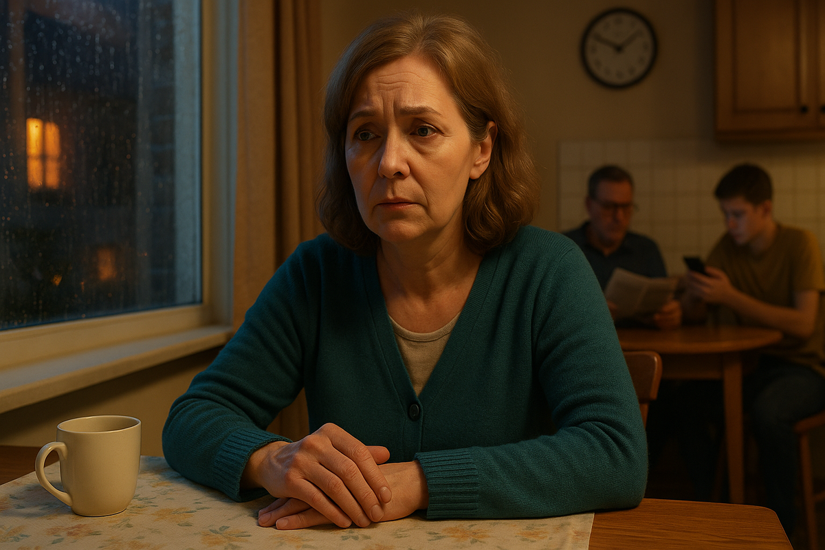 Мария устало села за стол, вглядываясь сквозь окно в темнеющий двор. По стеклу прыгали редкие капли дождя. Сердце сжалось — сколько раз она пыталась сказать: «Я не добавление к плите. Я же не только старая добрая Мария Ивановна — котлеты, советы, вечно выслушаю, — я живая! Я могу за себя постоять... Но почему нужно напоминать всем, что я — это тоже человек?»