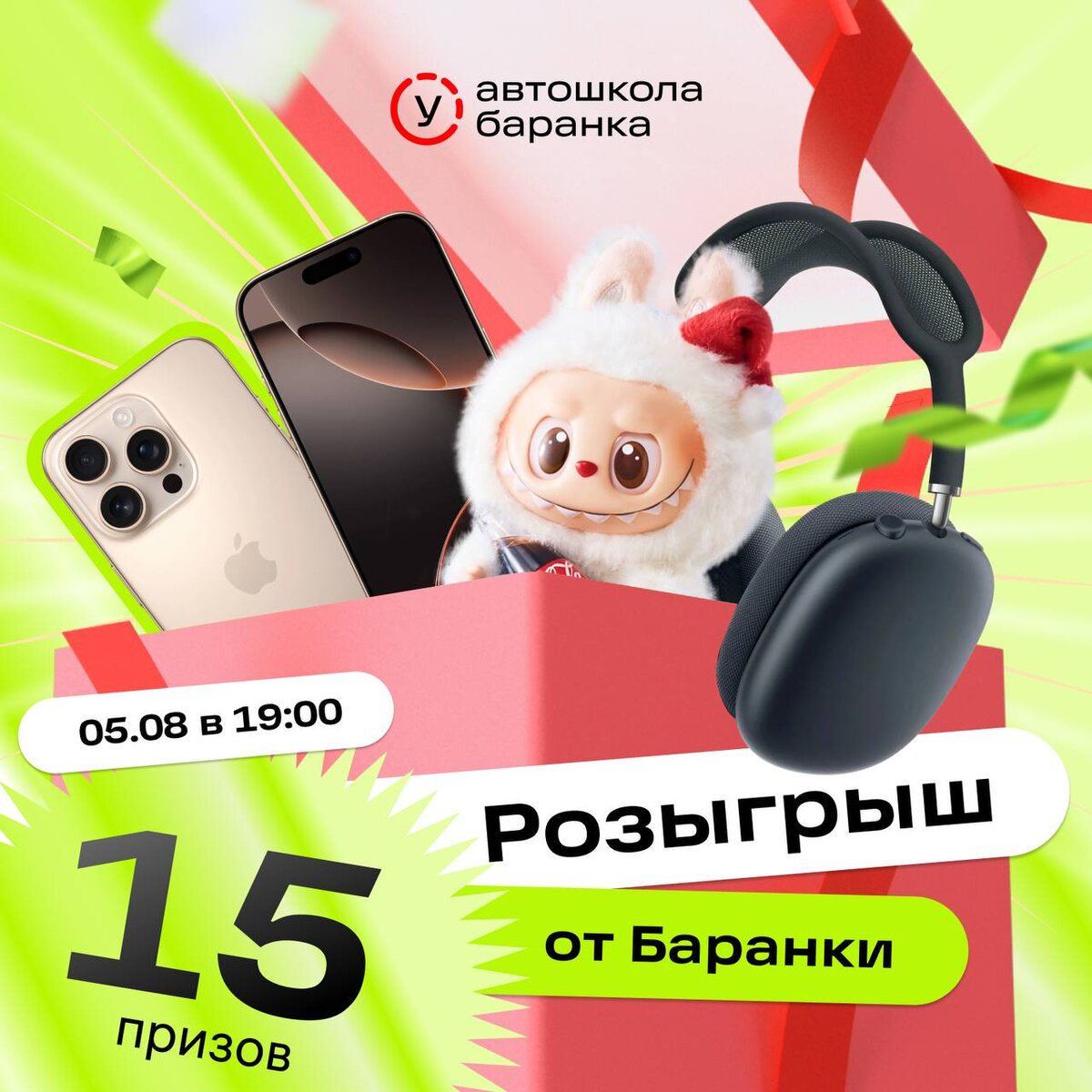 Уже сегодня в 19:00 узнаем счастливчиков, которые получат крутые призы от Баранки: Айфон, наушники, бесплатное обучение и Лабубу или Стича 🤪
