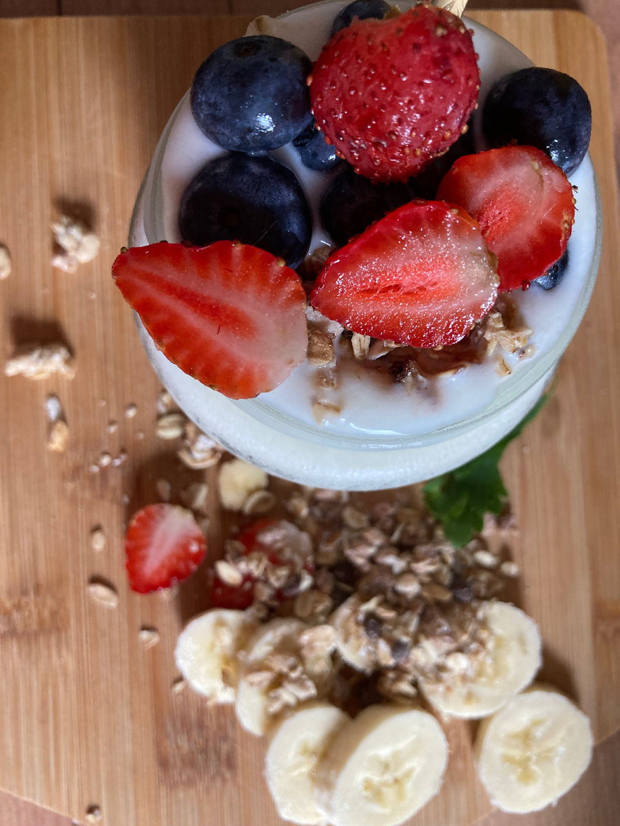 Сегодня у меня самый вкусный завтрак! Мы ездили в деревню и купили молоко.Решила попробовать закваску ,я уже писала. Все разлила по порционный баночкам и поставила в холодильник. У меня не магазинное молоко, поэтому совсем по другому ведет себя. Получилось как йогурт питьевой.Да и каждая баночка получилась по разному.Почему? Я не знаю. Я дополнила вареньем крыжовника с орехами,специально делала для йогуртовой добавки. мюсли банан голубика клубника Вся польза сразу в одной баночке. Это муж попросил У него творог ..Он ягоды любит. я ему клубнику и голубику положила. А дочери варенье и голубика. Ей так захотелось.У нее то же творог. Вот так мы питаемся. хорошего настроения ! И питайтесь вкусно и полезно!