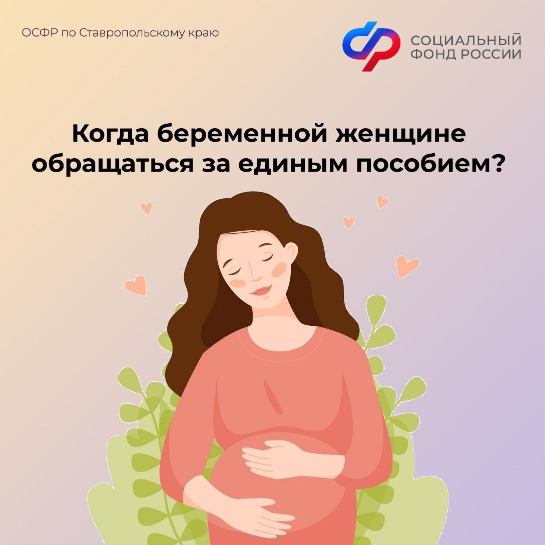 🤰Когда беременной женщине обращаться за единым пособием? ❗️Отделение СФР по Ставропольскому краю назначает единое пособие при обращении женщины после наступления срока беременности 12 недель. 🏠Условия назначения пособия - у всех взрослых членов семьи есть доход или объективные причины его отсутствия; - среднедушевой доход семьи не превышает прожиточный минимум на человека. На Ставрополье – это 15 960 рублей; - каждый трудоспособный член семьи имеет в расчетном периоде доход не ниже четырёх минимальных размеров оплаты труда (доход за 12 месяцев не менее 89 760 рублей); - имущество семьи не превышает установленного; - женщина стала на учет в медицинской организации на ранних сроках беременности — до 12 недель. 💳Размер единого пособия для беременных женщин 50%, 75% или 100% прожиточного минимума трудоспособного населения (на Ставрополье с начала года это 8698, 13047, 17396 рублей). 📲Подать заявление на единое пособие можно: - на портале госуслуг - в клиентской службе Отделе