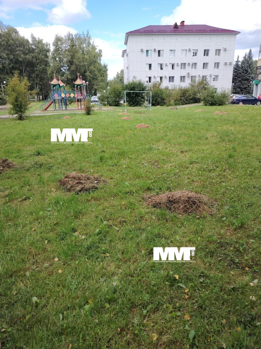 Раньше такого не было. Скосили - пару дней и убирали все. А в этом году что творится? По всему городу такое. Вот и в нашем дворе, за администрацией. Скосили, наделали кучки и всё.