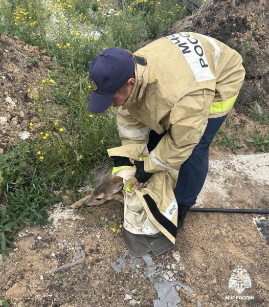 Белгородские спасатели вытащили косулёнка, провалившегося в строительный котлован