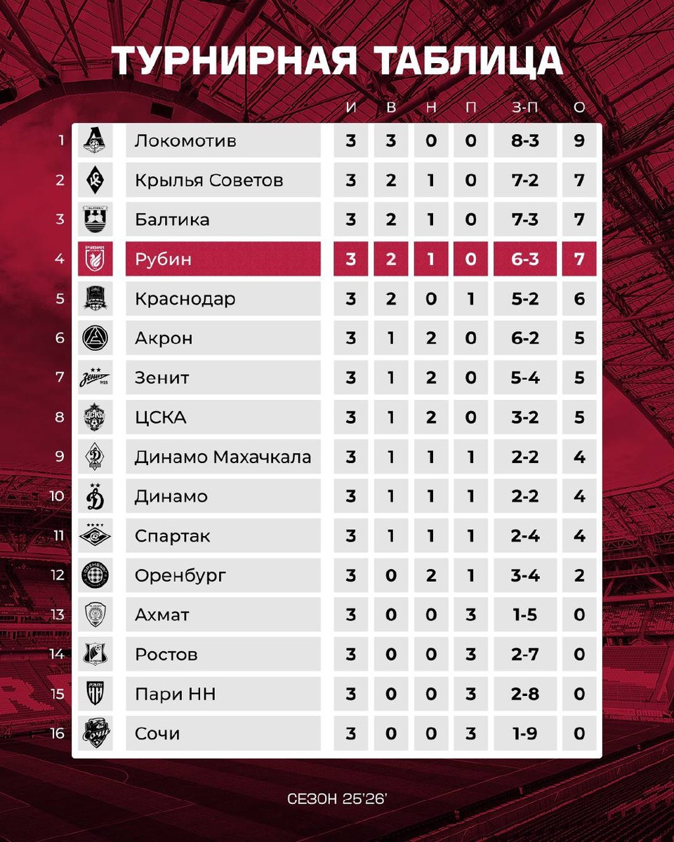 Турнирная таблица МИР РПЛ после третьего тура 🔚📊 Как оцените старт чемпионата для команды? 👏 – отлично ✌ – нормально ⚽️ – надо выше! Больше информации в нашей группе, переходите