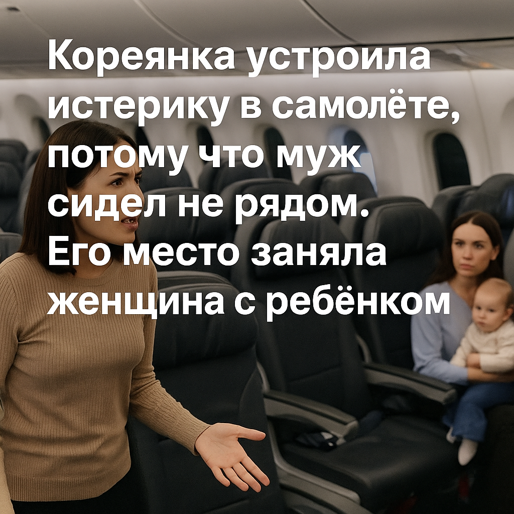 Кореянка устроила истерику в самолёте, потому что муж сидел не рядом. Его место заняла женщина с ребёнком