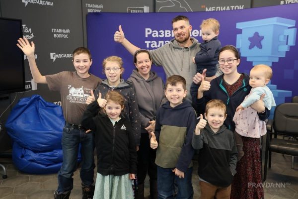 На снимке — она с учениками нижегородского лицея у матрешек на ярмарке.