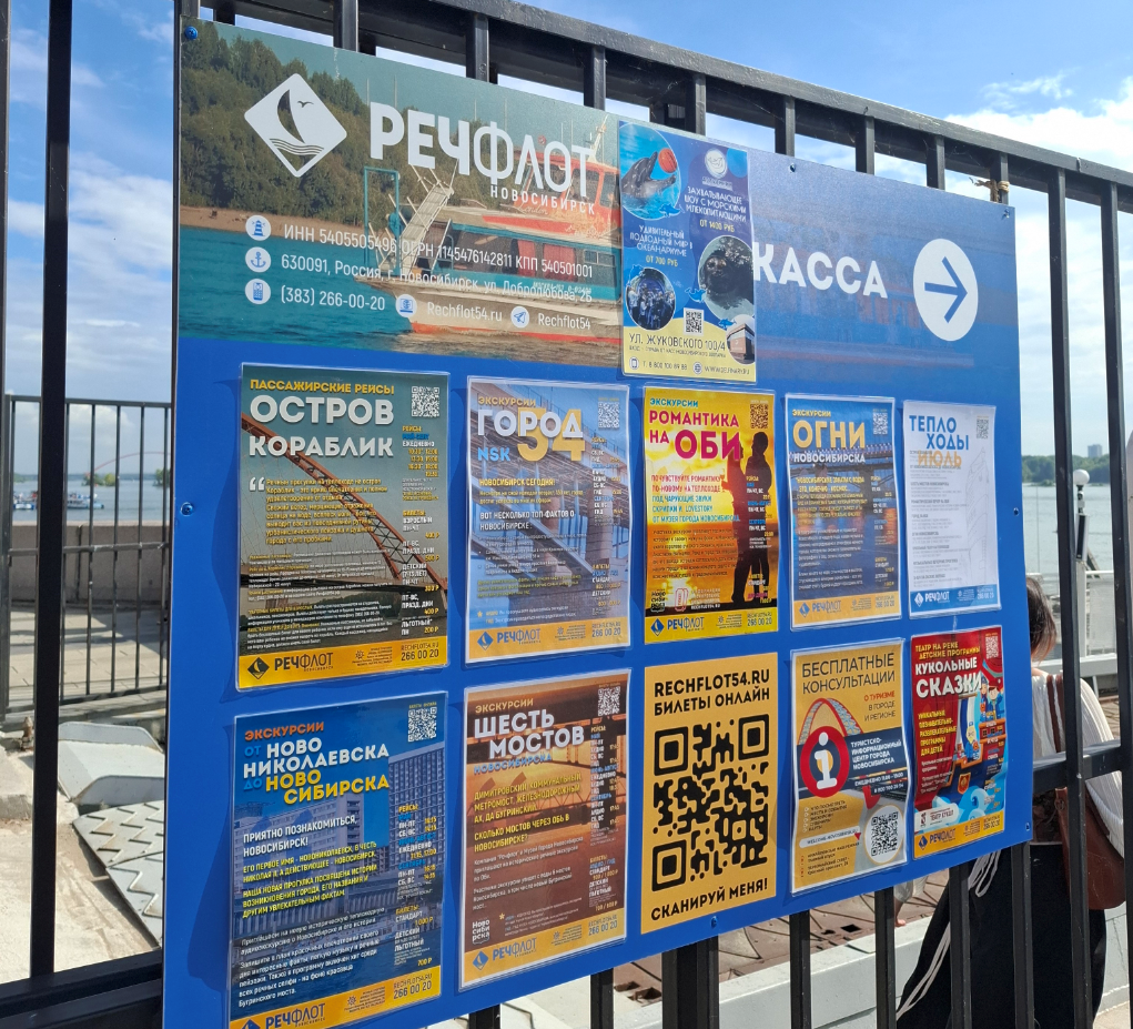 На причале Новосибирска теплоходы отходят один за другим. Речфлот предлагает много экскурсий на воде. И одна из их экскурсий - Шлюзование.