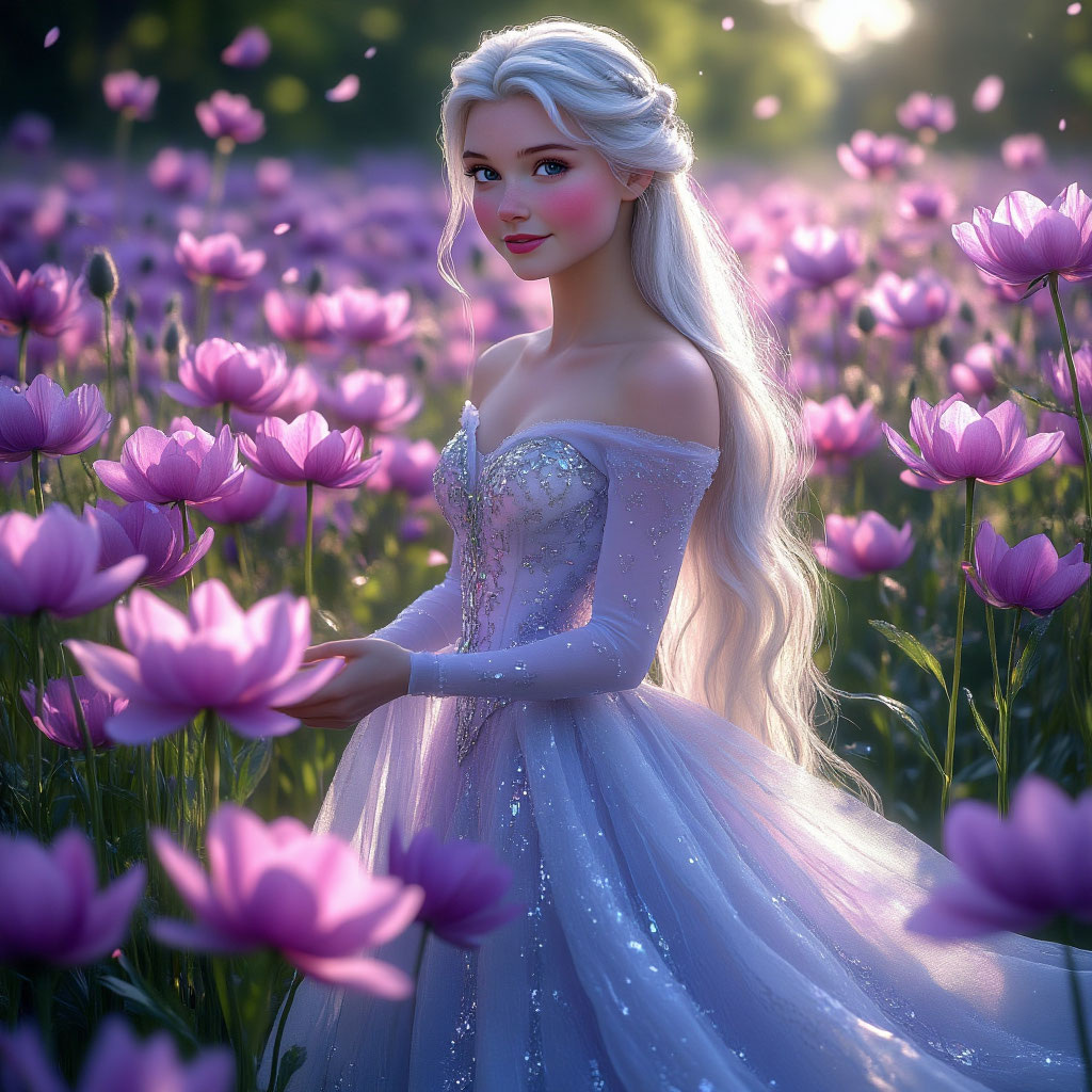 В далёком-далёком королевстве, где горы касались облаков, а реки сверкали, как серебряные ленты, жила юная принцесса по имени Амелия. Её волосы переливались всеми оттенками золота, а глаза сияли, словно два драгоценных камня. Каждый день она гуляла по волшебному саду своего замка, где цветы пели чарующие песни, а деревья шептали древние заклинания. Но однажды тёмная колдунья Моргана, чьё сердце было полно злобы, наложила страшное заклятие на королевство. Всё вокруг погрузилось в вечную зиму. Деревья покрылись чёрным инеем, а цветы превратились в кристаллы льда. Только в самом дальнем уголке сада остался один цветок — его лепестки излучали тёплый золотистый свет. Амелия узнала от старого садовника о Светлом Цветке, способном разрушить любое заклятие. Но чтобы его сила проявилась, нужно было пройти три испытания: найти три волшебных камня в самых опасных местах королевства. Первым на пути Амелии оказалась вершина Серебряного пика. Ветер, наполненный магией, свистел в ушах, а снежные ви