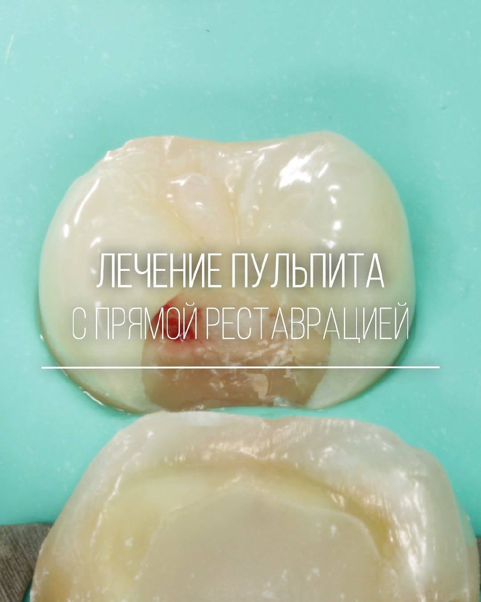 Клинический случай от Дмитрия Николаева @d_nicolaev До/После Работа выполнена за одно посещение: лечение пульпита с последующей прямой реставрацией. Препарирование каналов выполнено инструментами T flex (Eurofile). Основной канал отпрепарирован на всю длину до 35/02, второй - до точки схождения, ограничился 15/06. Для активации гипохлорита натрия использовал сочетание звукового активатора (Dialog) и ультразвука (Irri, Acteon). Обтурация - в гибридной технике с эпоксидным силером (АН plus). Прямая реставрация использовал адгезивную систему Prime&Bond Universal (DentsplySirona) в технике тотального травления. Композиты - Estelite bulk-fill (Tokuyama), NeoSpectra A3 (DentsplySirona), Asteria WE (Tokuyama). На контрольном снимке обратите внимание на низкую рентгеноконтрастность Estelite bulk-fill - из него выполнено ядро зуба, по неопытности можно ошибиться и принять его за очень неглубоко поставленный СВШ. После завершения работы, пациентка пересела в кресло хирурга для консультации и пла