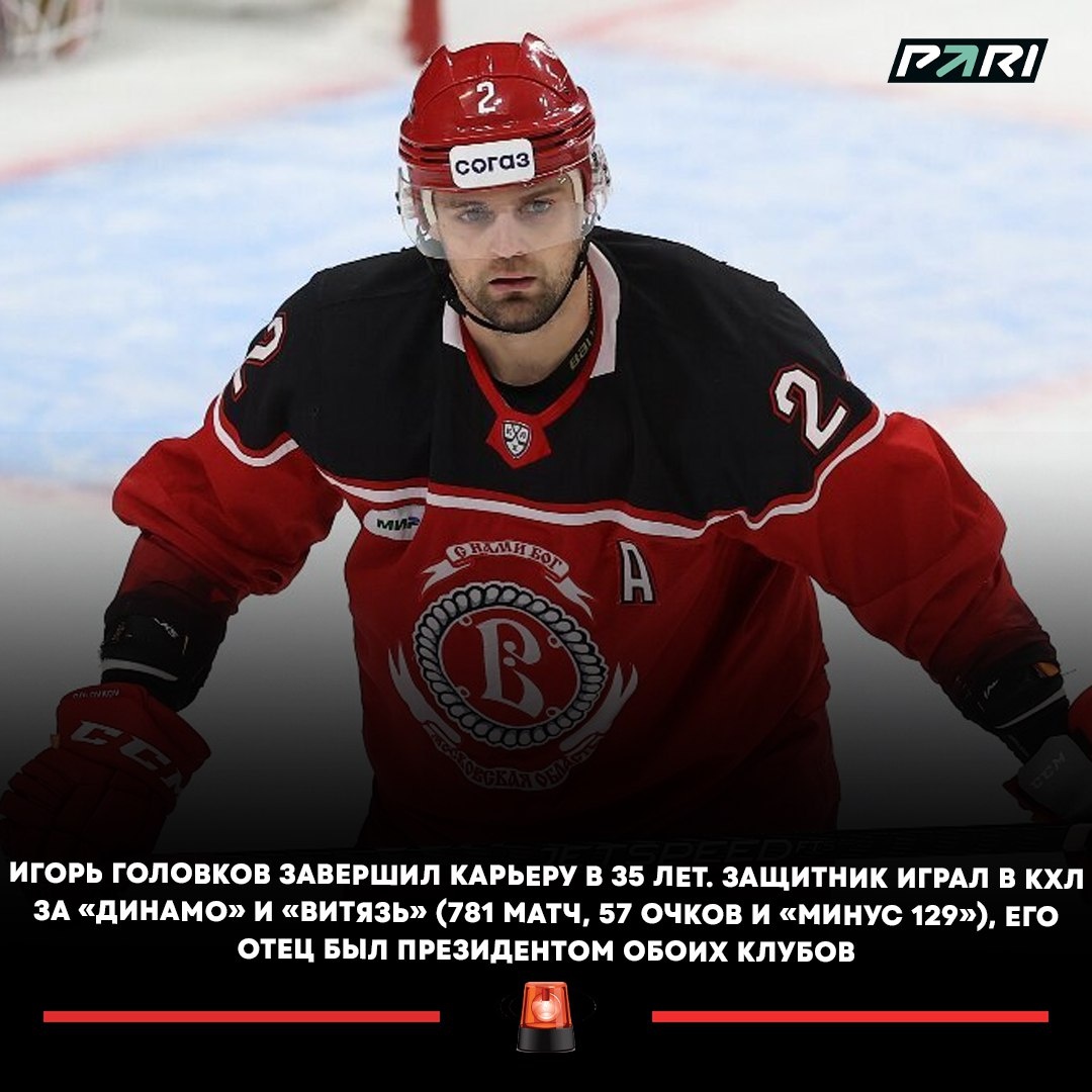 🔥🇷🇺 Игорь Головков завершил карьеру в 35 лет. 📊 Хоккеист провел 781 матч в КХЛ с учетом плей-офф и набрал 57 (9+48) очков при суммарном показателе полезности «минус 129». 🚨 В первых двух сезонах КХЛ (2008/09 и 2009/10) Головков выступал за московское «Динамо», с сезона-2011/12 и до текущего года – за «Витязь».