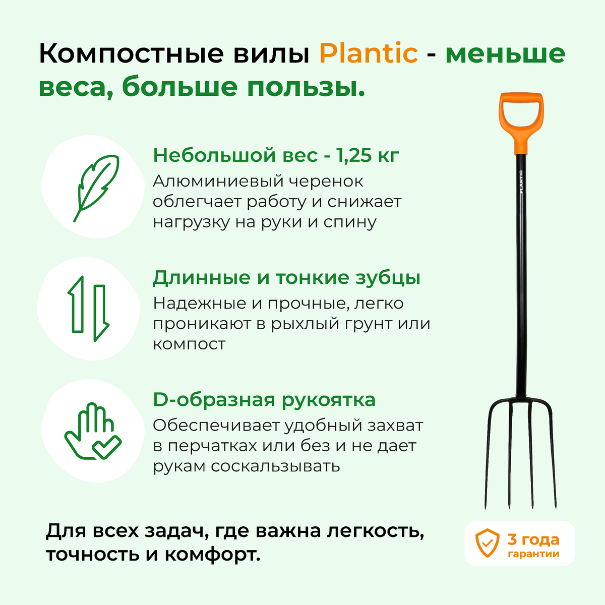 D-образная рукоятка не скользит, удобно работать в перчатках и во влажную погоду. 🔸 Идеальны для компоста, мульчи, ботвы и рыхлой почвы