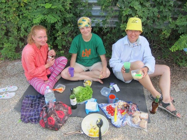 Прошу внимательно прочитать всё это. Если что-то вызывает у вас резкое неприятие (что-то имеется в виду не из буфета – он разнообразен, а из основной еды), обязательно сообщите заранее. будем думать. Представьте себе мою ситуацию. Мне надо думать о куче вещей, магазины нечасты, ночевать официально нигде нельзя, успевать бы и купаться и всё же проезжать правильное расстояние. И если начинаются кулинарные капризы, это заметно усложняет мне жизнь. Вы сами мамаши и прекрасно понимаете, как неудобно, когда ребёнок отказывается есть явно полезную еду, но кормить-то его надо! Я уж не люблю это слово, но напоминаю, что условия у нас всё-таки походные. Никакой вредной пищи я вам не предлагаю, так что попробуйте проявлять гибкость.