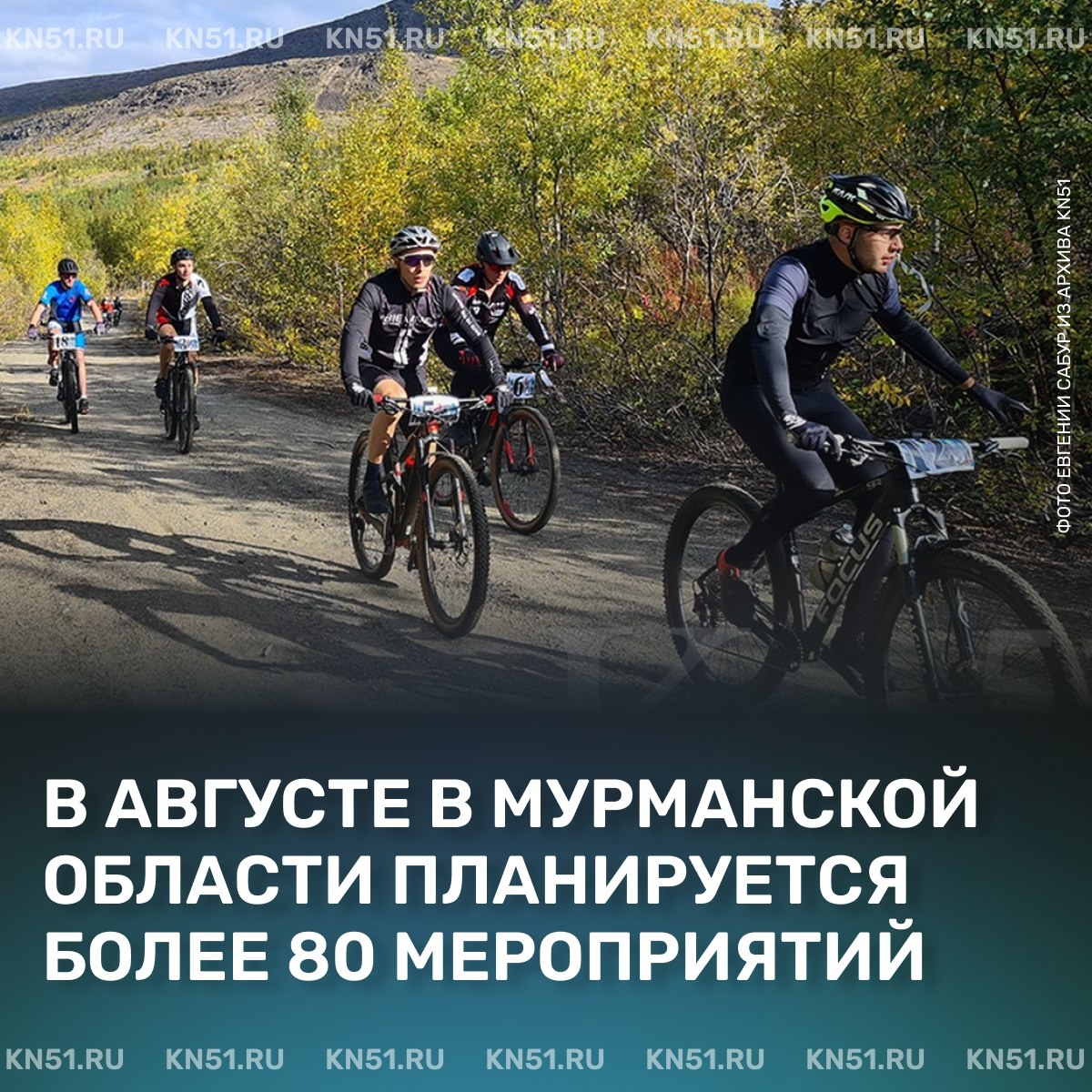 🚵 Старт спортивным событиям августа в регионе даст финал VI Спартакиады молодежи России по велоспорту пройдет 5 и 6 августа Порядка 50 сильнейших юниоров и юниорок со всей России будут бороться за звание лучших в дисциплине «маунтинбайк – кросс-кантри». Участников ждет сложнейшая трасса длиной в 4 км, а на финише победители и призеры будут награждены грамотами, медалями и сувенирной продукцией Минспорта России. 📌 9 августа спортивное сообщество отметит свой главный праздник – Всероссийский день физкультурника. В муниципалитетах региона пройдет порядка 60 мероприятий. Ознакомиться с ними можно на официальном сайте регионального минспорта vk.cc/cOhkm0 🏃 Так, в 9 августа в Мурманске на территории Долины Уюта стартует массовый забег на дистанцию до 5 км для спортсменов и любителей от 18 лет и старше. Старт в 12.00, необходима регистрация orgeo.ru/event/45270 💪 Здесь же состоится Всероссийская акция ВФСК «ГТО», регистрация на сдачу нормативов по ссылке orgeo.ru/event/45271