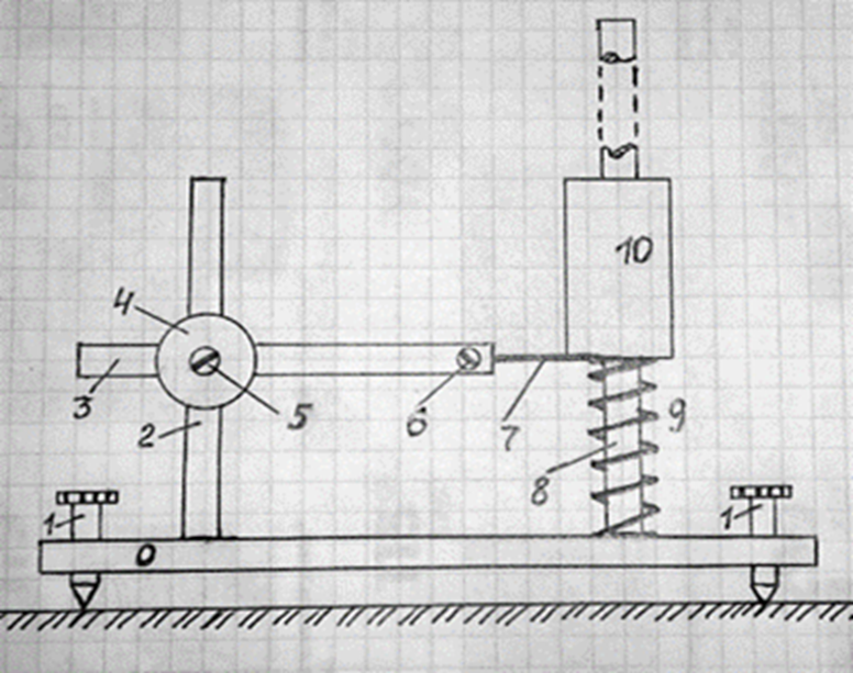 3. На следующем снимке я специально показываю вам крупным планом, как одну из четырех регулируемых опор моего прибора, с помощью которых при подготовке прибора к работе я устанавливаю по уровню в двух взаимно перпендикулярных плоскостях, как строгую горизонтальность его основания, так и строгую вертикальность его направляющего стержня.