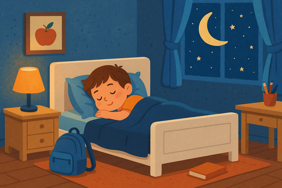 Экран тормозит выработку мелатонина — гормона сна. Начинайте ограничивать экранное время после 20:00. Телефон — на кухню, не в кровать. Лучше — тёплый душ, сказка или музыка. Если ребёнок ложится в 23:00, не ждите, что он встанет в 7:00 бодрым. Начните сдвигать отбой по 20 минут каждый день. Без давления, просто раньше выключайте свет и всё. Фиксированная последовательность действий — мозг привыкает засыпать сам. Например: душ → пижама → зубы → 15 минут в кровати с книжкой → сон. И так каждый вечер. Кровать = не место для игр и ютуба. Это пространство для отдыха. Если ребёнок спит на старом диване или в неудобной кровати — он и будет крутиться до ночи.