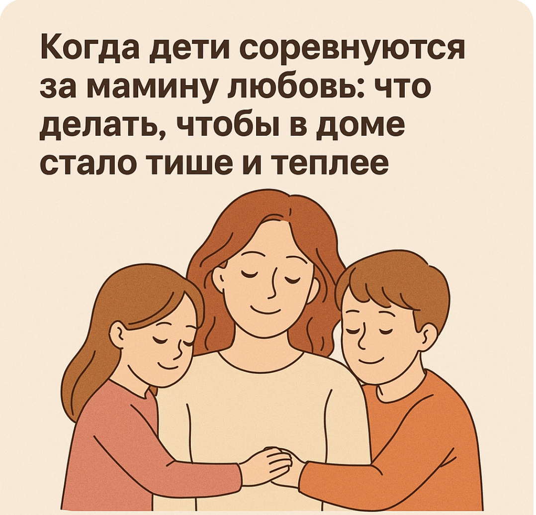 Когда дети «делят» маму: как вернуть в дом спокойствие и тепло❤️ Мамина любовь — как солнце. Её хватит на всех. Но дети об этом не всегда знают. Поэтому, когда в семье несколько детей, бывает, что начинается борьба за внимание мамы: ссоры, ревность, обиды. И за этим часто стоит простой (и очень понятный) детский страх: «А вдруг мама любит его больше, чем меня?..» Важно помнить: ревность — это не «плохое поведение» и не испорченность. Это внутреннее беспокойство. Задача мамы — помочь каждому ребёнку почувствовать себя нужным и любимым. Тогда уходит тревога, а вместе с ней — и ревность. Вот несколько рабочих шагов, которые могут помочь: 🫶Не сравнивайте детей — даже мысленно Даже если сказать с добром: «Вот Лиза быстрее убралась», — один из детей всё равно почувствует себя хуже. Вместо этого лучше отметить каждого по отдельности: «Спасибо, что помог. Я это правда заметила и оценила». 🫶Личное время с каждым ребёнком Даже 10–15 минут в день, когда вы полностью «в нём» — это бесценно