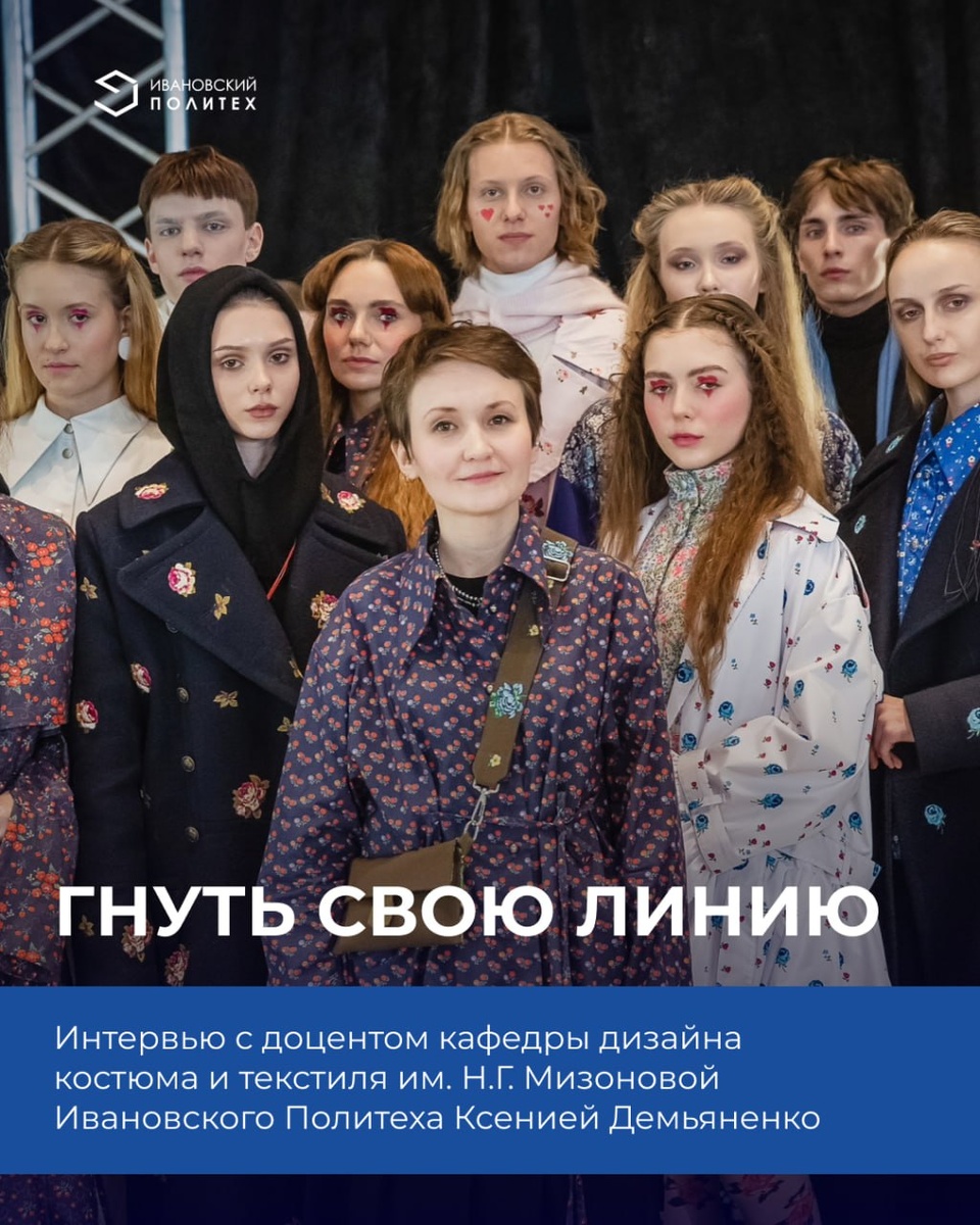 Под таким заголовком «Редакция Портала 1000 инф.» опубликовала интервью с доцентом кафедры дизайна костюма и текстиля им. Н.Г. Мизоновой Ивановского Политеха Ксенией Демьяненко. Подробнее читайте на нашем сайте